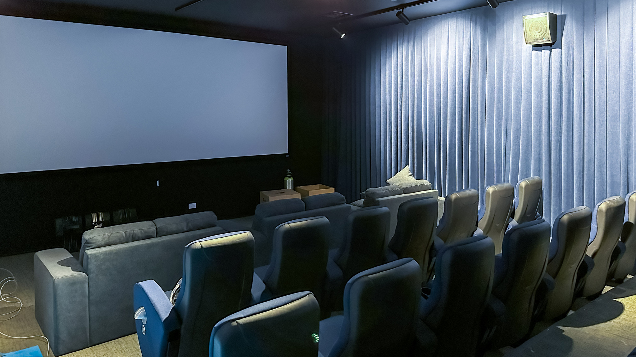 The Riviera Cinema is currently a single-screen theater equipped with a 5-meter screen, 32 premium seats, three two-seater sofas, digital laser projection, and a modern 7.1 sound system, using acoustic technology from Ukrainian manufacturer MAG Cinema and speaker mounts from MN Mounting Solutions.